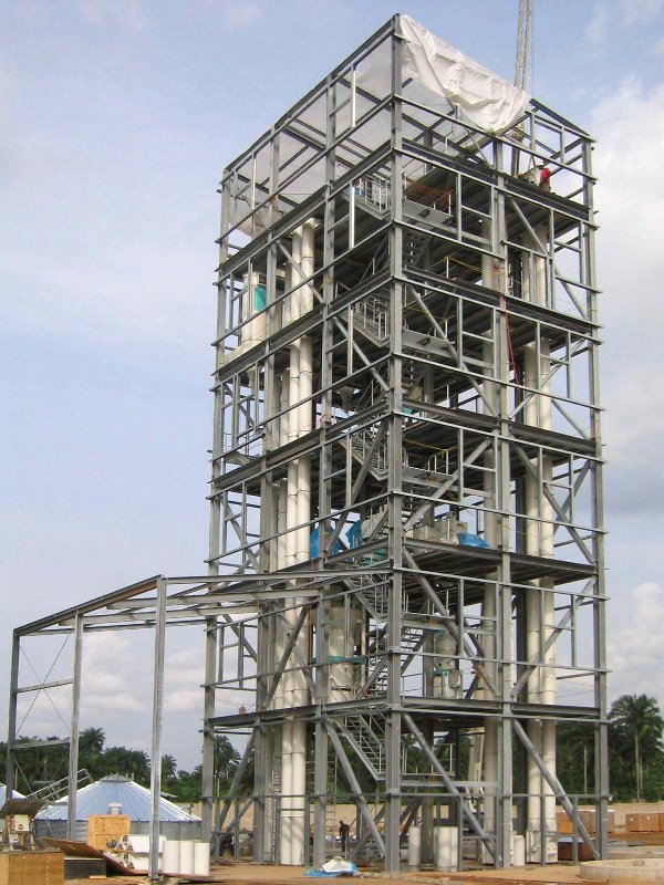 An welches Land denken Sie, wenn Sie »Bier« hören? Sicher nicht an Nigeria – aber wir! Dort haben wir für eine Mälzerei sechs Gebäude schlüsselfertig errichtet. Von der Stahlkonstruktion über Dach und Wandverkleidungen, Zwischenbühnen, Treppentürmen, Geländern bis hin zu den Fassadeneinbauten haben wir alles geliefert, Zollabwicklung inklusive. 50 Großcontainer wurden von Hamburg und Antwerpen aus verschifft. Vom nigerianischen Port Harcourt ging es 650 holperige Kilometer per Lastwagen bis zur Baustelle. Mobilkrane waren rar, aber wir waren findig und zuletzt waren Werkzeug und Werkstoff an Ort und Stelle. Ein Supervisor von uns koordinierte den Aufbau, zehn einheimische Monteure führten ihn aus. Ihnen ist es zu verdanken, dass wir trotz hoher Temperaturen auf einen erfolgreichen Abschluss des Projektes anstoßen konnten.
