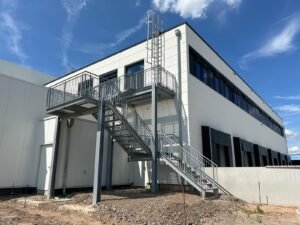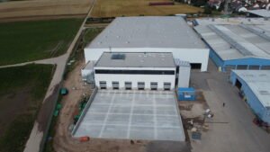 Für unseren Kunden Kardex Produktion Deutschland GmbH durften wir eine beeindruckende neue Stahlhalle mit Versandbereich, Rampen und modernem Bürotrakt realisieren. Mit einer Versandhalle von 60 × 100 m und einer Traufhöhe von 12 m entstand eine leistungsstarke Erweiterung, die Funktionalität, Effizienz und Nachhaltigkeit vereint.